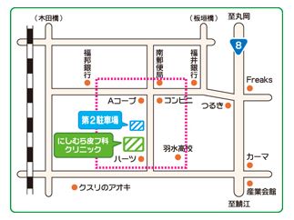 福井赤十字病院と病診連携を行っているため、福井赤十字病院への紹介、また、福井赤十字病院での外来後の通院も可能です。