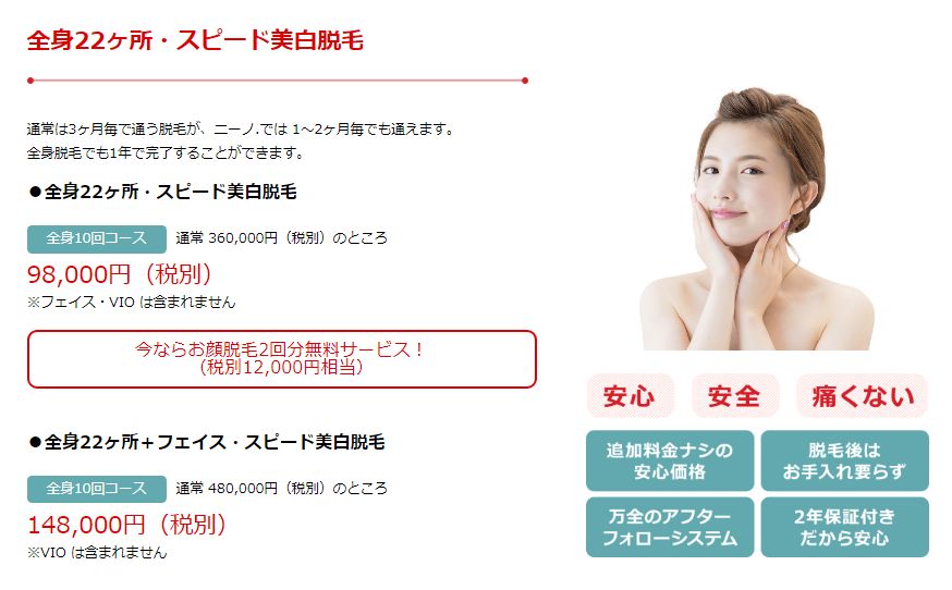 脱毛料金はVラインで10万円ですが、それ以上かかることがないという永久保証・永久脱毛タイプ